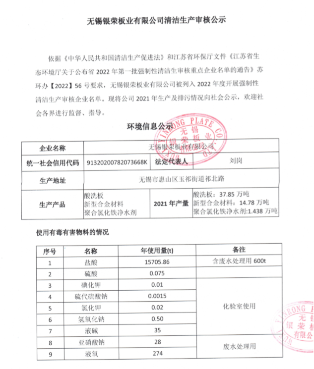無錫銀榮板業(yè)有限公司清潔生產(chǎn)審核公示
