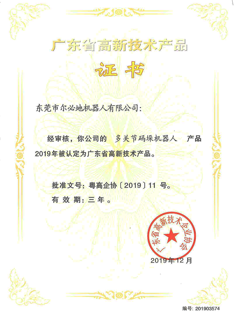 截止目前,東莞市爾必地機器人有限公司榮獲多項廣東省高新技術產品。每項新技術、新產品都凝聚了爾必地人刻苦鉆研、積極創新的精神力量,證明了爾必地人開拓進取、攻堅克難的技術實力。同時,高新技術產品也是國家高新技術企業認定的重要參考依據。因此,加快公司新產品研發及技術團隊建設,對提升公司競爭力和經濟效益具有重大意義。2020讓我們不驕不躁、擼起袖子加油干,向更大的目標努力。