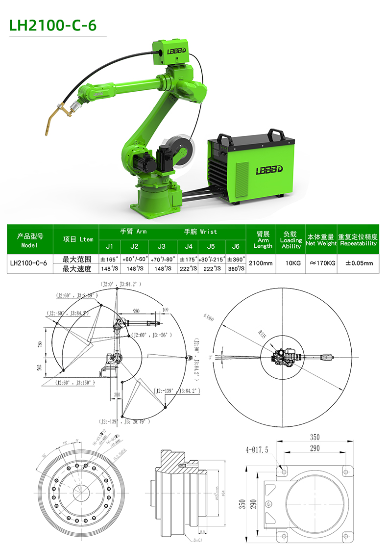 | 額定負(fù)載(kg) | 10 | 活動半徑(mm) | 2100 |